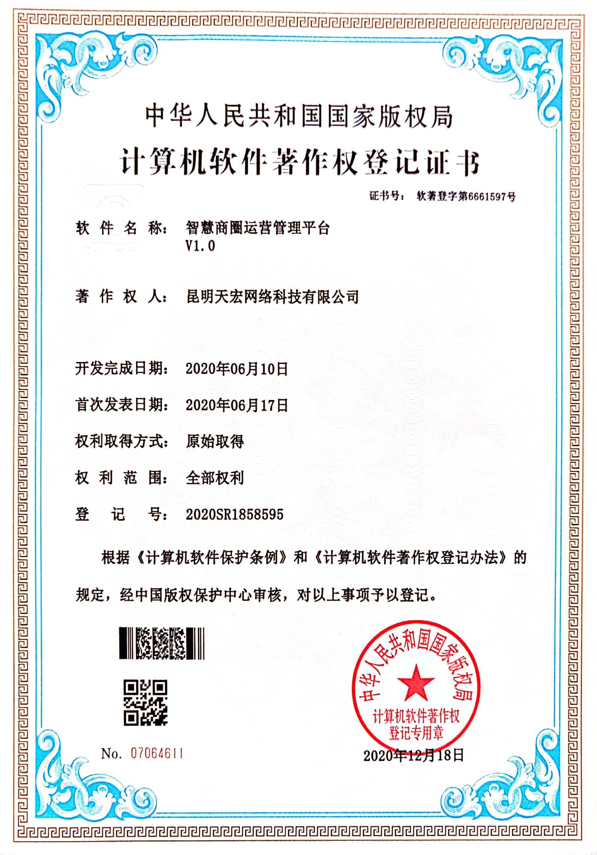 天宏網(wǎng)絡通過不斷的研發(fā)創(chuàng)新,現(xiàn)擁有50多項計算機軟著證書,包括多商家點餐系統(tǒng)、門店收銀管理系統(tǒng)、通用OA協(xié)同辦公管理系統(tǒng)、智慧商圈運營管理平臺、天宏健康智慧+系統(tǒng)、同城O2O管理系統(tǒng)等。
